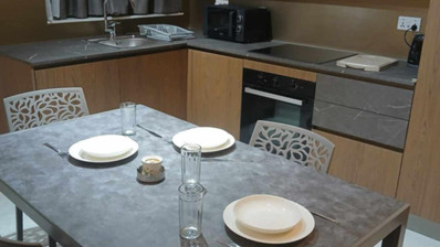 The open-plan living and dining area is filled with natural light, creating a welcoming atmosphere to relax or entertain guests. The kitchen is fully equipped for your daily needs, and both bedrooms provide ample storage. The apartment is finished with contemporary touches and neutral colors, giving it a fresh, inviting feel.